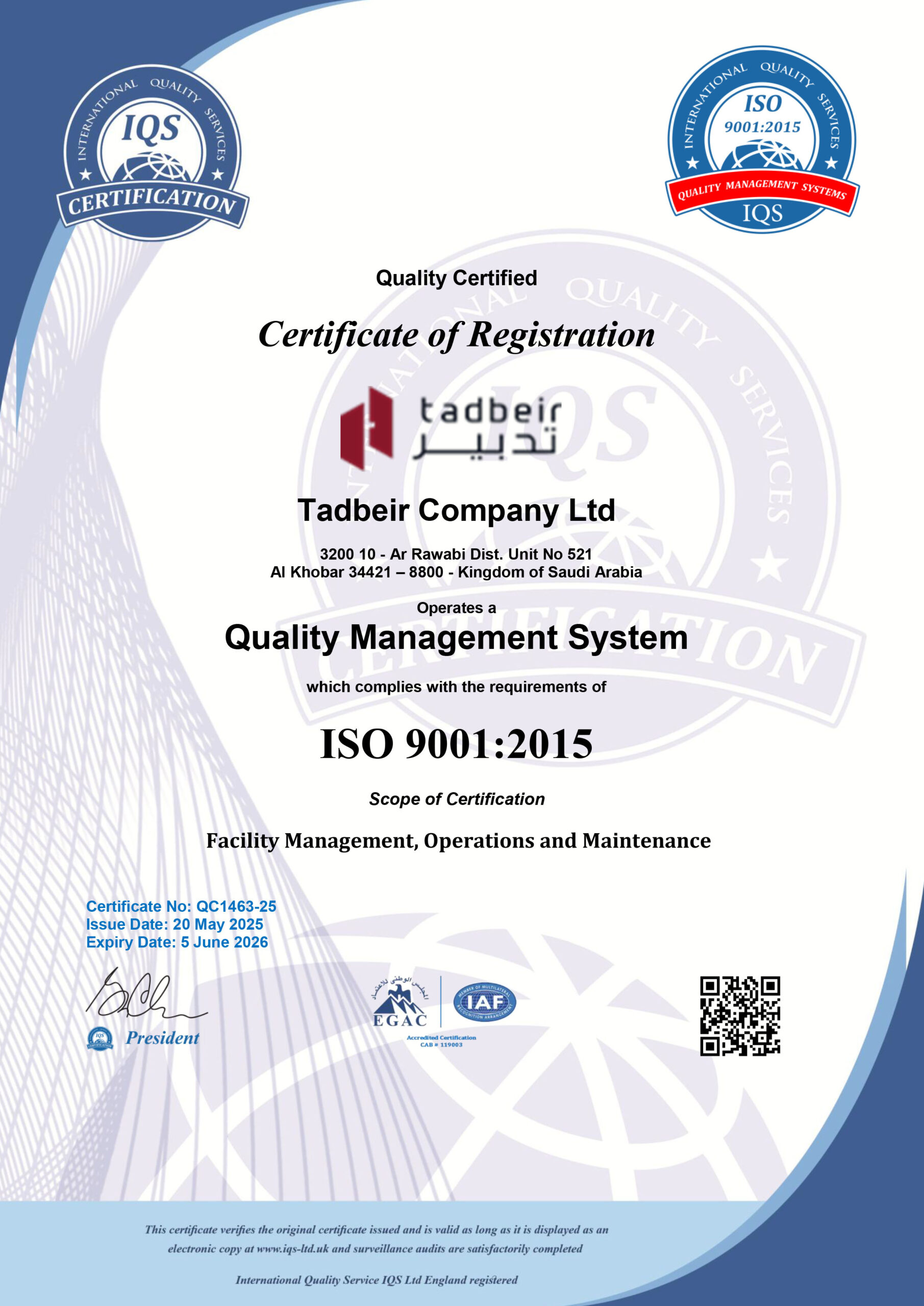 86M6+4R, Al Rawabi, Al Khobar 34421, 2nd Floor 86M6+4R, Al Rawabi, Al Khobar 34421, Al Khobar 31952, Kingdom of Saudi ArabiaA showcase of our official certifications and accreditations.